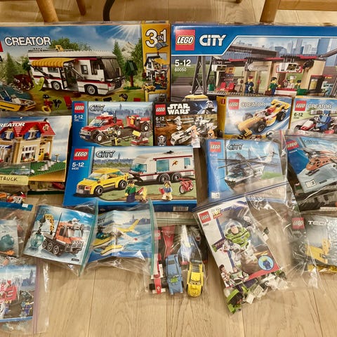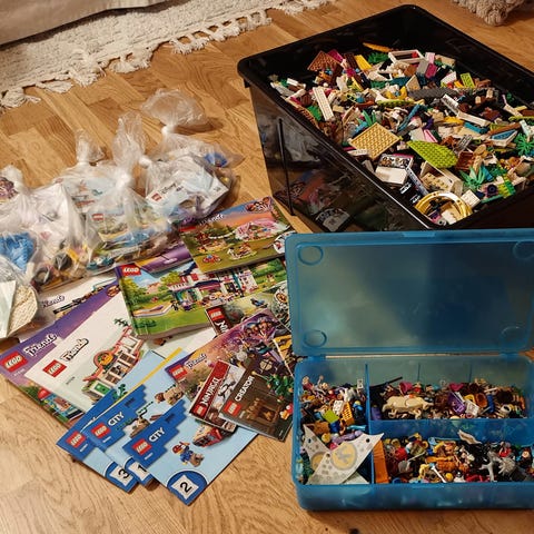 Byggsatser från bland annat Harry Potter, Lego City, Tekniklego, Technic, Star wars, Atlantis, Minecraft, Pirates, lego Creator. Många olika figurer. Kan inte garantera att alla bitar finns om du skulle bygga ihop allt samtidigt, men annars hittar du alltid ersättnings bitar, när du har 25 kilo att välja bland. 😀
