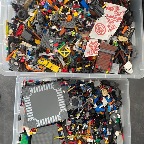 Stor Legosamling 25 kg med manualer, färgsorterat