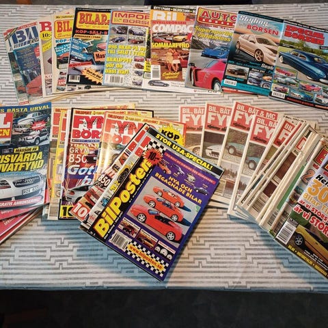 Motorbörsen - en annonstidning för bilar och motorcyklar. Har 34 nummer, några enstaka från 90-talet och resten från början av 2000-talet. En historisk och nostalgisk tillbakablick på bilar och priser m.m. från förr. Även lite artiklar och annat läsvärt. Tidningarna kan skickas, men jag måste då packa och väga innan jag kan ange fraktpris.