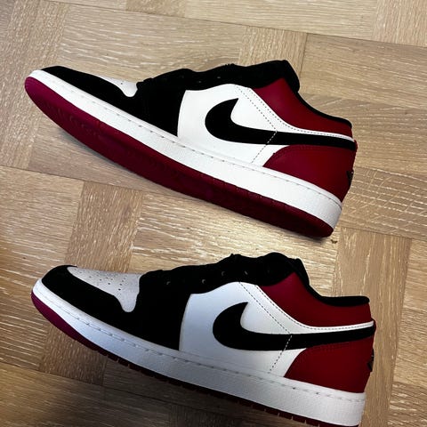 Nike Air Jordan 1 Low OG "Black Toe". Storlek US 10 (44). Helt nya/oanvända i originalboxen. Fler bilder kan skickas på begäran. 2000kr.