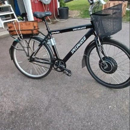 El-cykel som går att vika ihop. Ingen raket men hjälper till bra vid cykling.