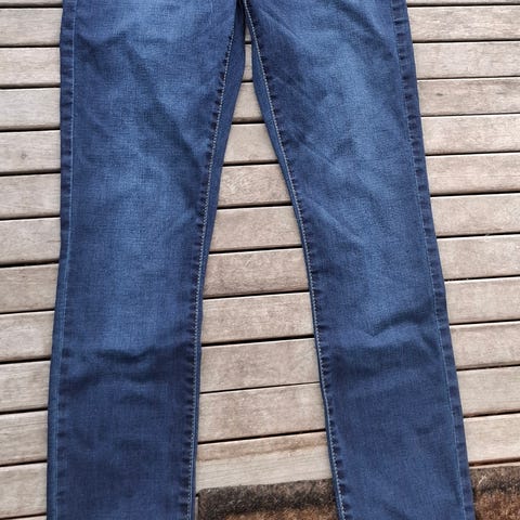 Svarta jeans i mycket gott skick, utan slitningar eller fläckar. Tyget har bra elasticitet och består av 100 % bomull. Midja: 76 cm, längd: 98 cm. Säljes eftersom storleken inte passar längre.