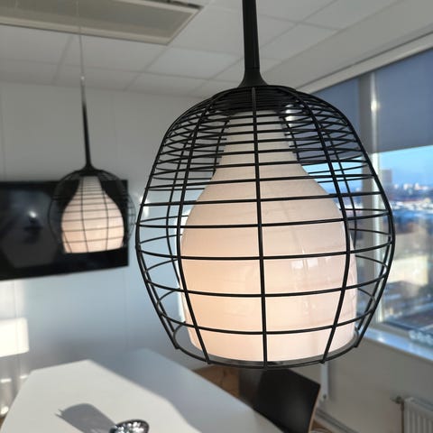 Väl omhändertagna designlampor med unik utforming, Har fungerat som vägghylla. Ger ett behagligt ljus och utgör ett intressant rumsinslag.
