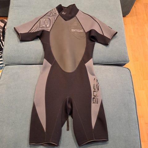 Våtdräkten användes bara en gång. Perfekt skick. Svart.