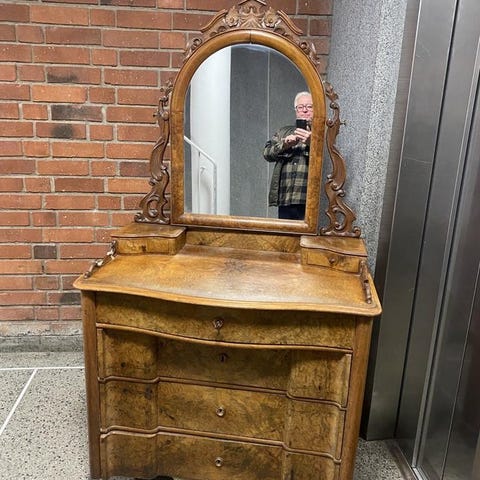 Antik avlutad spegelbyrå med 2 lådor & 2 skåp