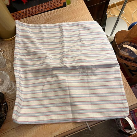 Långa gardiner i 100% bomull (denimfärgade) som införskaffats 2011 på Lindholms Interiörhuset (numera stängt) i Linköping. Knappt använts så de är ej solblekta. Gardinerna knyts runt gardinstången. Märket är Lexington men lyckas inte hitta någon logga på gardinerna.
