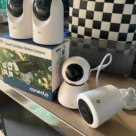 Ny övervakningskamera i kartong.