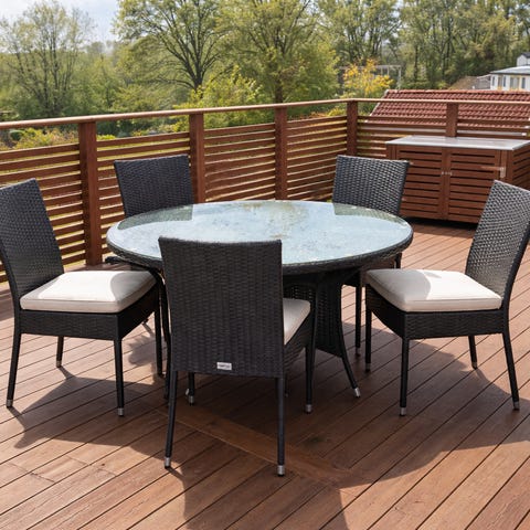 Utegrupp konstrotting. I det närmast nyskick. Mått på bordet, 96x96 höjd 75 cm Aluminiumram och konstträ på bordet. Hemtransport kan ordnas mot en avgift på 500kr inom Örebro