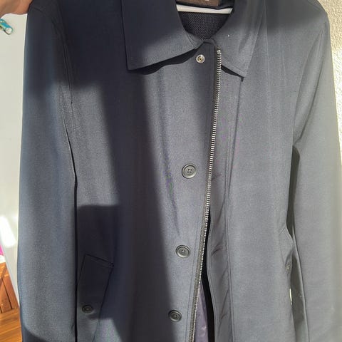 Kort jacka i en tvättad bomulls- och linnekvalitet med elastisk mudd i nederkant och vid ärmslut. Försedd med praktiska sidofickor, dubbla innerfickor samt ett tunt bomullsfoder.