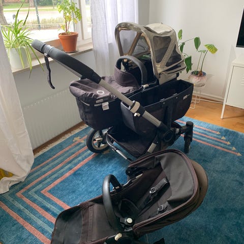Säljer en dubbelvagn från Asalvo, endast 69 cm bred! Vagnen har bara använts två gånger och har endast förvarats inomhus, så den är som ny. Regnskydd medföljer och är oanvänt. Har tagit bort bältesskydden men de medföljer och är oanvända. För mer information om vagnen se länken https://www.jollyroom.se/barnvagnar/tvillingvagnar/dubbelvagnar/asalvo-bro-tvillingvagn-grey