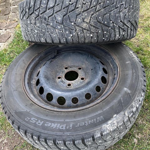 3) bild 8-10 Friktionsdäck 195/65 R15 på plåtfälg som har suttit på en Opel Zafira. Nokian WR03 6,8 mm profil. 1000 Kronor