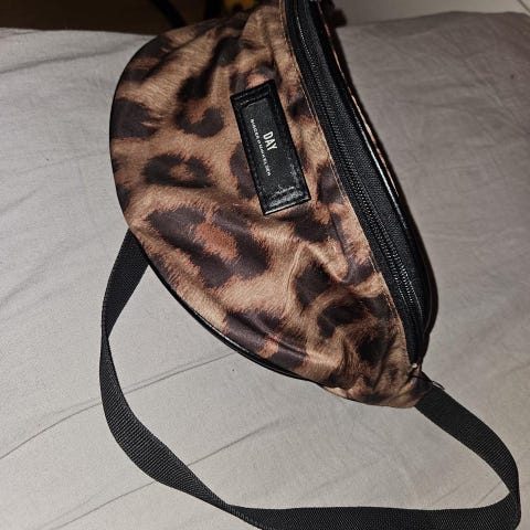 En super snygg axelrem väska från DAY ET. Den har ett huvud fack och med ett litet inre fack med dragkedja. Ett yttre fack framtill som stängs med magnetlås. Den är i nyskick. Den är svart med subtila blå blommönster. B: 22 cm H: 13 cm och D: 5 cm. Praktisk och snygg i ett.