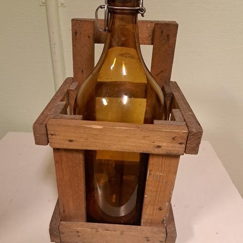 En flasköppnare i malm och en plåtskylt. 270 kr för båda.