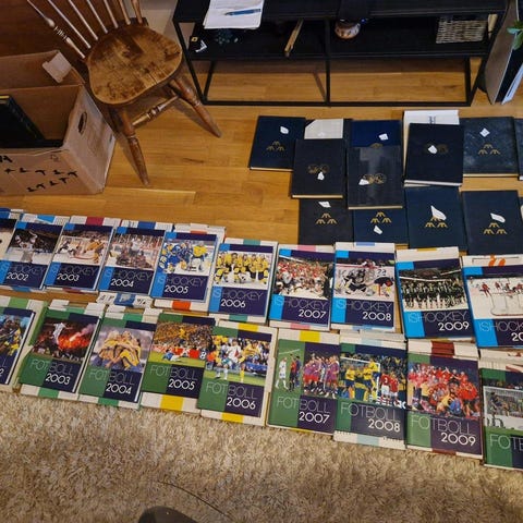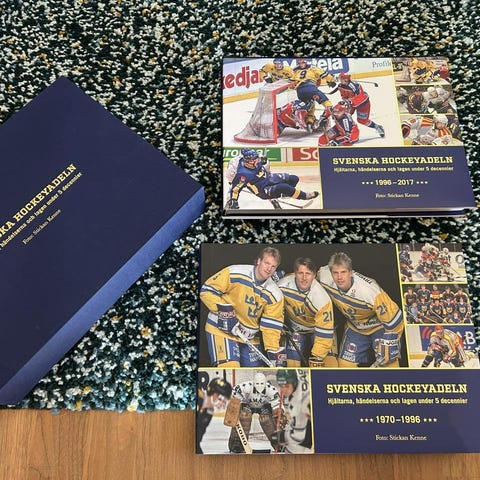 Säljer böckerna "Årets ishockey" 1960-72 och 1979-89 samt "Olympiaboken" 1960, 72, 76, 80, 84 och även "PUCKEN en bok om svensk ishockey"