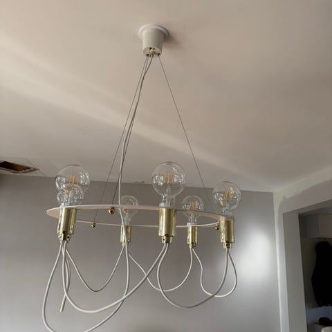Cool designlampa för tak. Skön belysning. Mått: ca: 40X40cm. Köpt för 7500kr på Vålamagasinet.