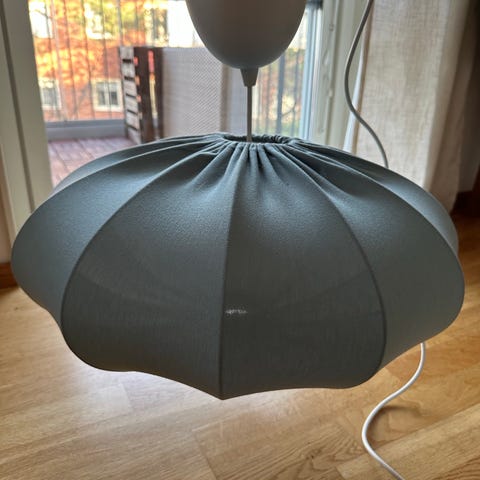 Cool designlampa för tak. Skön belysning. Mått: ca: 40X40cm. Köpt för 6000kr på Vålamagasinet.