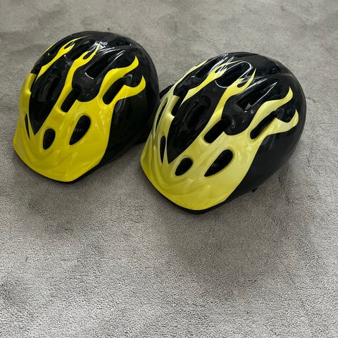 Säljer 2 cykelhjälmar barn/junior. Använda men inte varit med om några kraftiga stötar.