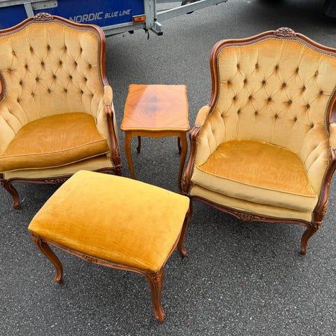 Helt nya fåtöljer i oöppnad kartong . Finns i rosa med guld /mässing .