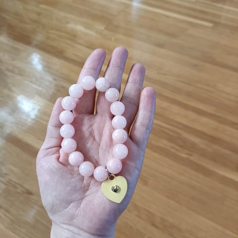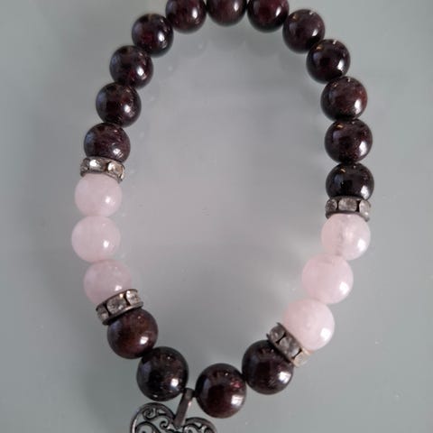 Ljusrosa rosenkvarts / rosékvarts kristall armband med guldliknande detaljer säljes.