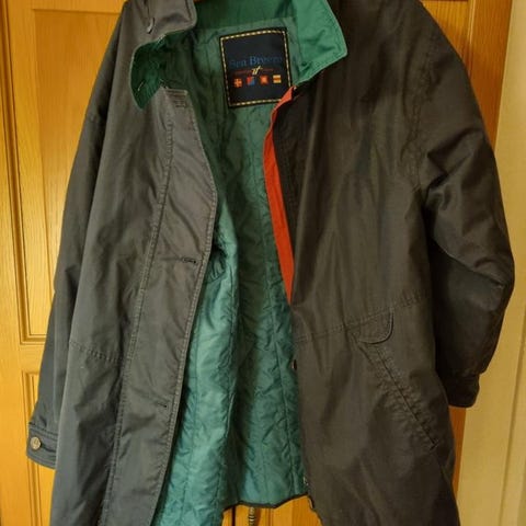 Säljer en mycket fin olivgrön herrjacka med dragkedja och knappstängning. Jackan har fyra fickor framtill varav två med dragkedja och en innerficka. Mesh / tygfoder invändigt med gula detaljer invändigt. Tyget påminner en del om mockatyg. Knappt någon slitage i krage och armar. Storlek 58. Jackan är uppmätt till H/L: 79 cm och bredd vid midjan 2x 70 cm.