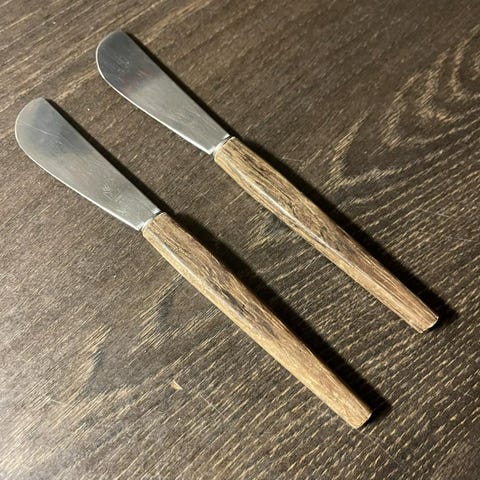 6 st vackra vintage bestick i Teak. Så kallade plockgafflar eller serveringsgafflar. I mycket gott skick.