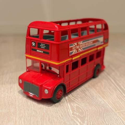 Leksaksbuss/Double Decker Bus, Corgi Juniors Daimler Fleetline. Bussen är 7,5 cm lång, 3,5 cm hög och 2,5 cm bred om man mäter hjulen. Hämtas i Sollentuna.