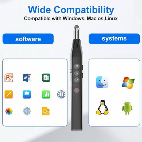 Oöppnad Esselte Air Laser Presenter LR8 i original förpackning. Trådlös PC-kontroller och laserpekare. Multifunktionell design för presentationer. Plug & Play, ingen programvara behövs. Kan användas som trådlös mus och mediapelar kontroll. Rita linjer och markera detaljer manuellt.
