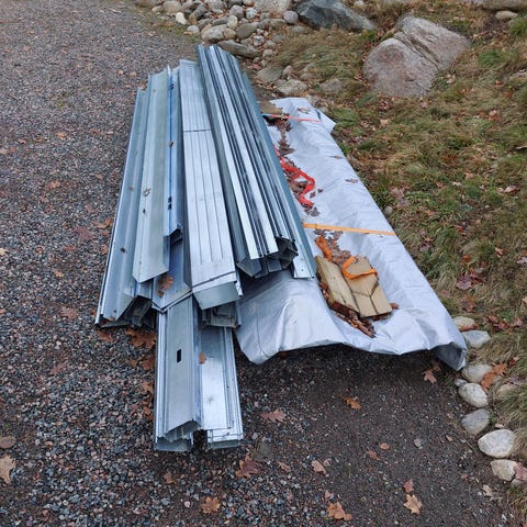 Det är stålreglar ca 30-35st. Dem är nästan 2,5 m långa och 70 cm bredda.