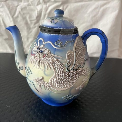 Arabia Tekanna med inbyggt filter blå och grön keramik