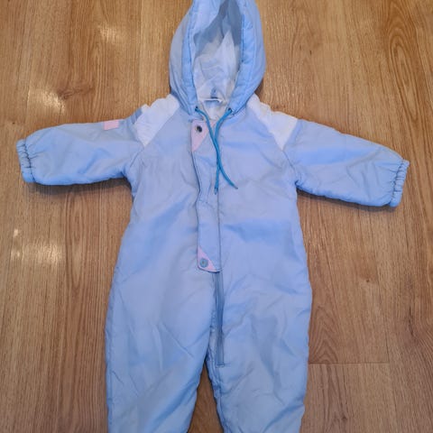 Overallen är i bra skick men finns lite små revor nere på benen. Storlek 80, ganska stor i storleken.
