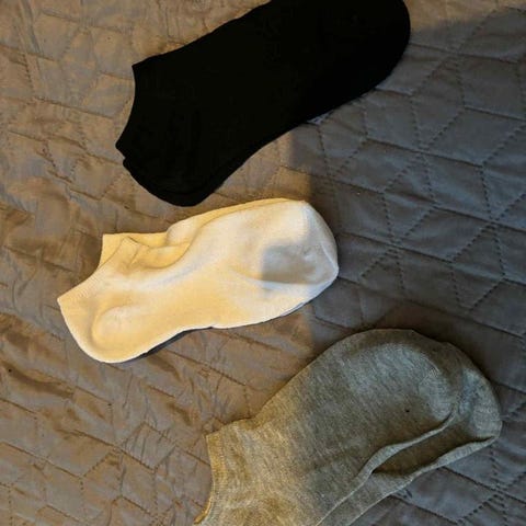 Ett set med fem par ankelstrumpor med leopardmönster i olika färger: rosa, lila, grå, vit och svart. Helt nya och oanvända självklart. One size men passar bäst 36-39.