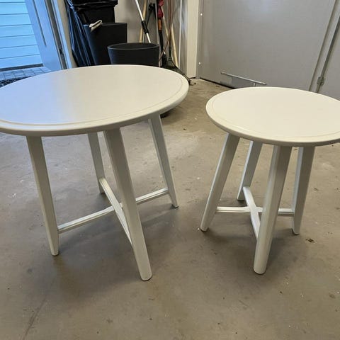 Säljer ett litet sidobord från IKEA som aldrig är använt. Bordets runda form göra att du får en generös bordsyta för brickor, samtidigt som den nätta designen gör bordet enkelt att placera.