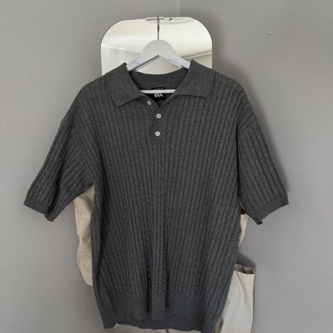 Ljusgrå randig pikétröja från Okey