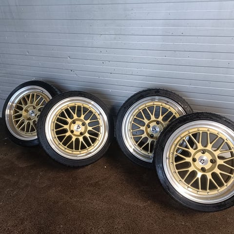 Säljer ett set av kvalitets fälgar och däck. Ni som letar efter dessa, er behöver jag inte informera om vad detta är.