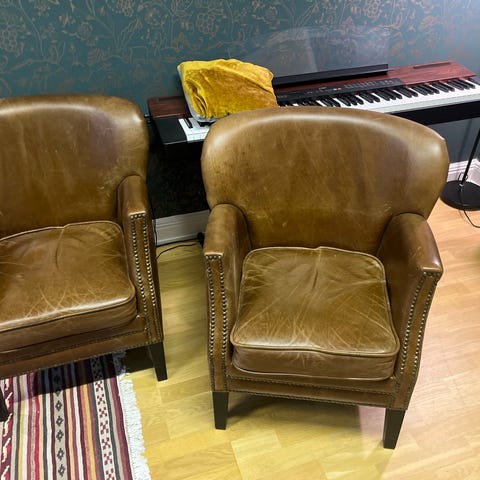 Jag säljer mina två superfina läderfåtöljer från DIS inredning / kostade ca 15.000kr och tänker mej nu halva priset för båda 7.000kr eller högstbjudande. Finns i Gamla stan.