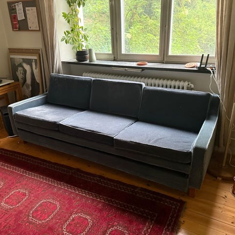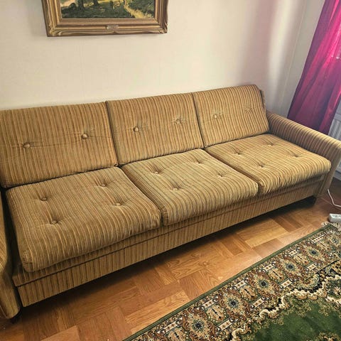 De sista bilderna visar soffan från auktion sajten och framför allt den kluriga mekanismen hur man kan fälla ut den till en bäddsoffa.