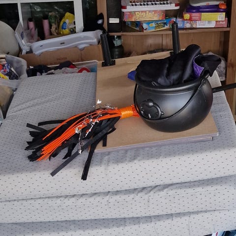 Säljer av 2 häxhattar i plysch stl ca 54-56. Samt ett roligt grönblinkande diadem Halloween witch som drivs på batteri.