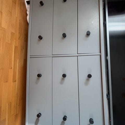 Enbart sporadiskt använd tidigare i hall för förvaring vantar, handskar, mössor, halsdukar, brochyrer etc.