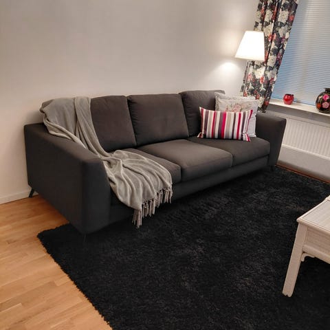 Fåtöljen är i nyskick och knappt sutten på. Den är köpt våren 2024 och har sedan dess bara stått och tagit plats i vardagsrummet. Hemmet är rök- och djurfritt.