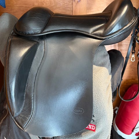En bomlös barnsadel som använts på shettis samt liten islandshäst. Väldigt skön att sitta i för barnet samt en mysig rosa/brun färg.
