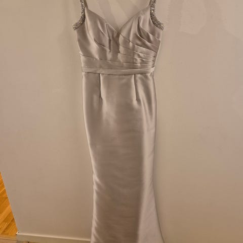 Jättefin halterneck klänning i silkesmaterial. Fina detaljer med bling-bling och smickrande skuren. Tyll i nederkanten för extra festkänsla.