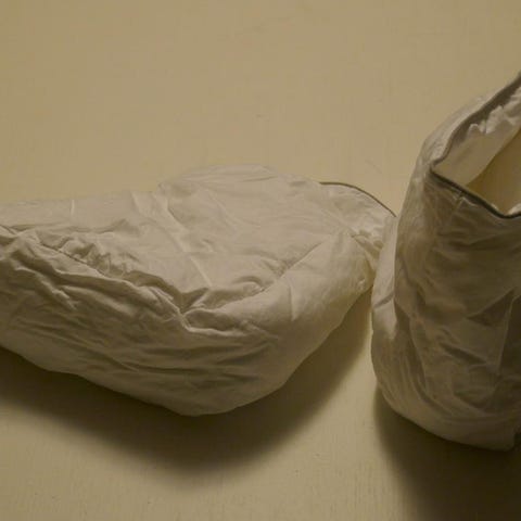 "Duntofflor" säljes. Det är inte dun i dem utan fyllningen är av polyester.