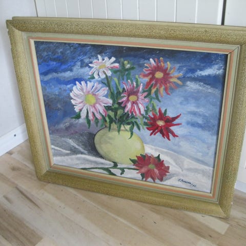 Originell oljemålning som går åt rosa/rött/lila/blå/lite svart. Köpt från canvasbutik på nätet för 4 år sedan. Bredd 140 och Höjd 70 cm.
