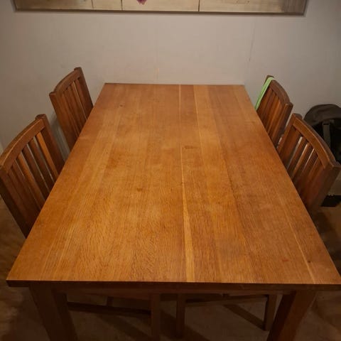 Dessa är för den händige, måste slipas, oljas efter konstens alla regler. Vi byggde dessa och har använts när vi varit större sällskap. De två ”borden” som är vid sidan slängs med.