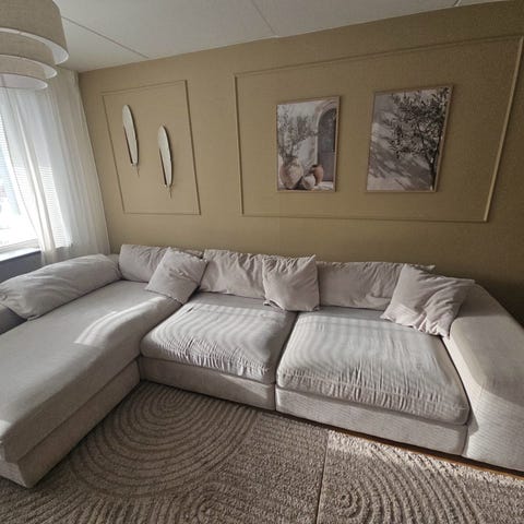 Säljer en Eichholtz Taylor soffgrupp (en soffa samt två tillhörande fåtöljer) i tyg Avalon White - inköpt på Newport 2024.