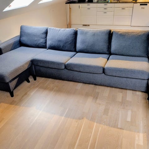 Kan finnas några små fläckar. Hund finns i hemmet! Dock ser det ut som stora fläckar på vissa bilder. Vet inte varför det blir så med kameran men det är det inte. Kom gärna och titta på den!