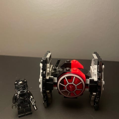 Anfall fienden med Lego Microfighters First Order Snowspeeder, med roterande knoppkanon med extra ammunition och plats för den medföljande minifiguren av en First Order-snötruppssoldat med strålgevär.