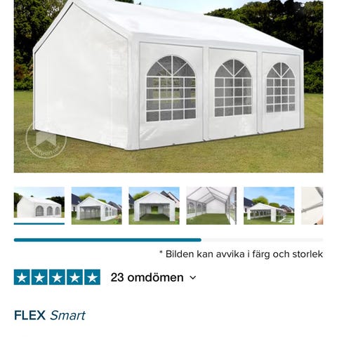 Partytält pvc 5x8 meter höjd i nock 2,75 i mycket bra kvalité inköpt från Dancover 2022. Nypris 12500 kr Alla rör är i galvaniserat stål. Även markrör / ram ingår som ger en fantastisk stabilitet . Förvaringsväskor ingår också. Lagning har skett på 1 fönster men är snyggt gjort med riktig laglapp. Använt vid tre tillfällen.