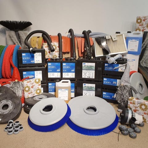 Större parti städutrustning enligt lista och bilder, större delen helt nytt. Redskapsskaft Aluminium 150 cm 100 st + ca 40-50 st lösa varav hälften nya. K-Stativ Lifetime 40 cm 30 st K-Stativ Lifetime 60 cm 40 st Moppar Activa Star 60 cm 40-45 st Activa Star 40 cm 20 st K-Mopp 60 cm Micro dry m frans 10 st Eco Hygienmopp X st