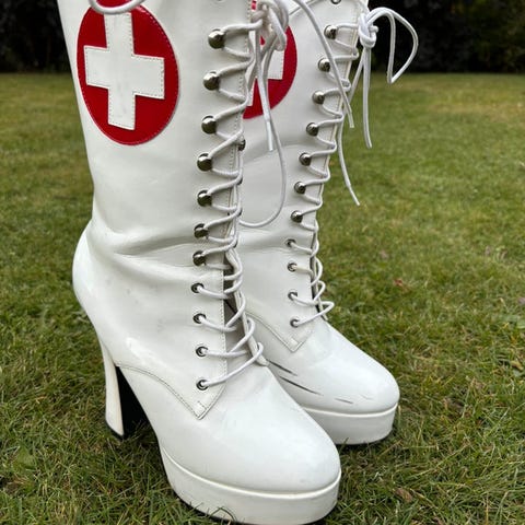 Pleaser Sexy Nurse Highheels klackar halloween dam Maskerad
